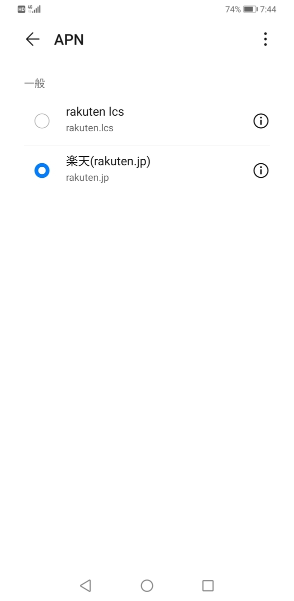 「rakuten.lcs」と「rakuten.jp」のAPNがプリセット済で、